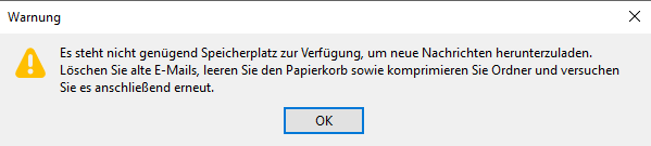 Senden von Nachrichten aus TH mit dem Problem: es steht nicht genügend Speicherplatz zur Verfügung, um neue Nachrichten herunterzuladen.