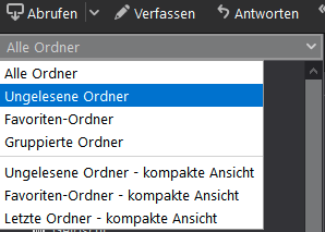 Gut, ich könnte jetzt in der Konten- und Ordnerliste, im Kopf der Liste, auch auf "ungelesene Ordner" umschalten, dann verliere ich aber die Gesamtansicht der Ordner und Postfächer und die wäre mir schon wichtig.