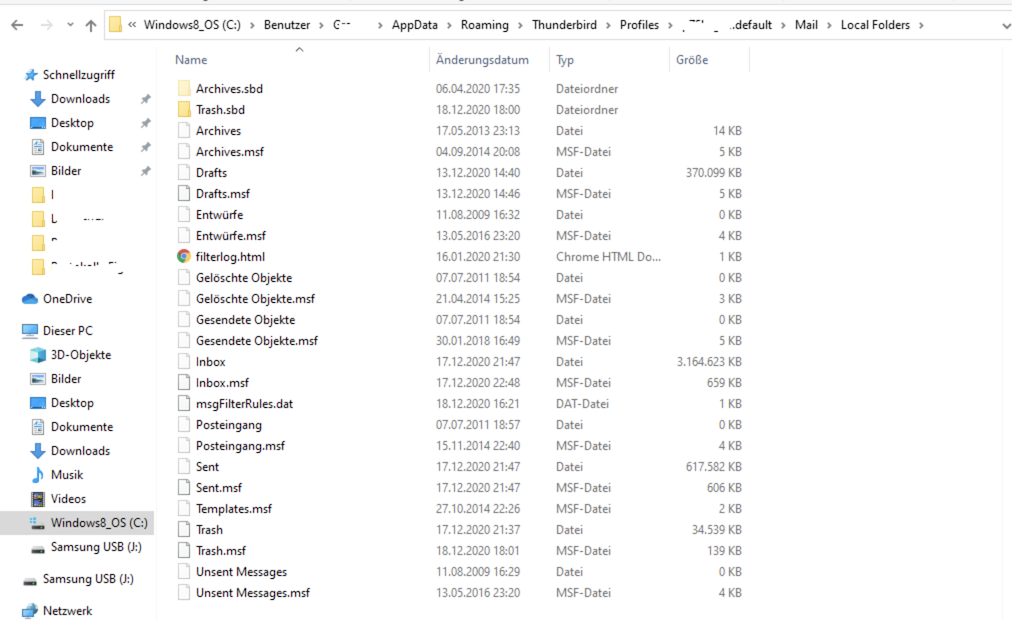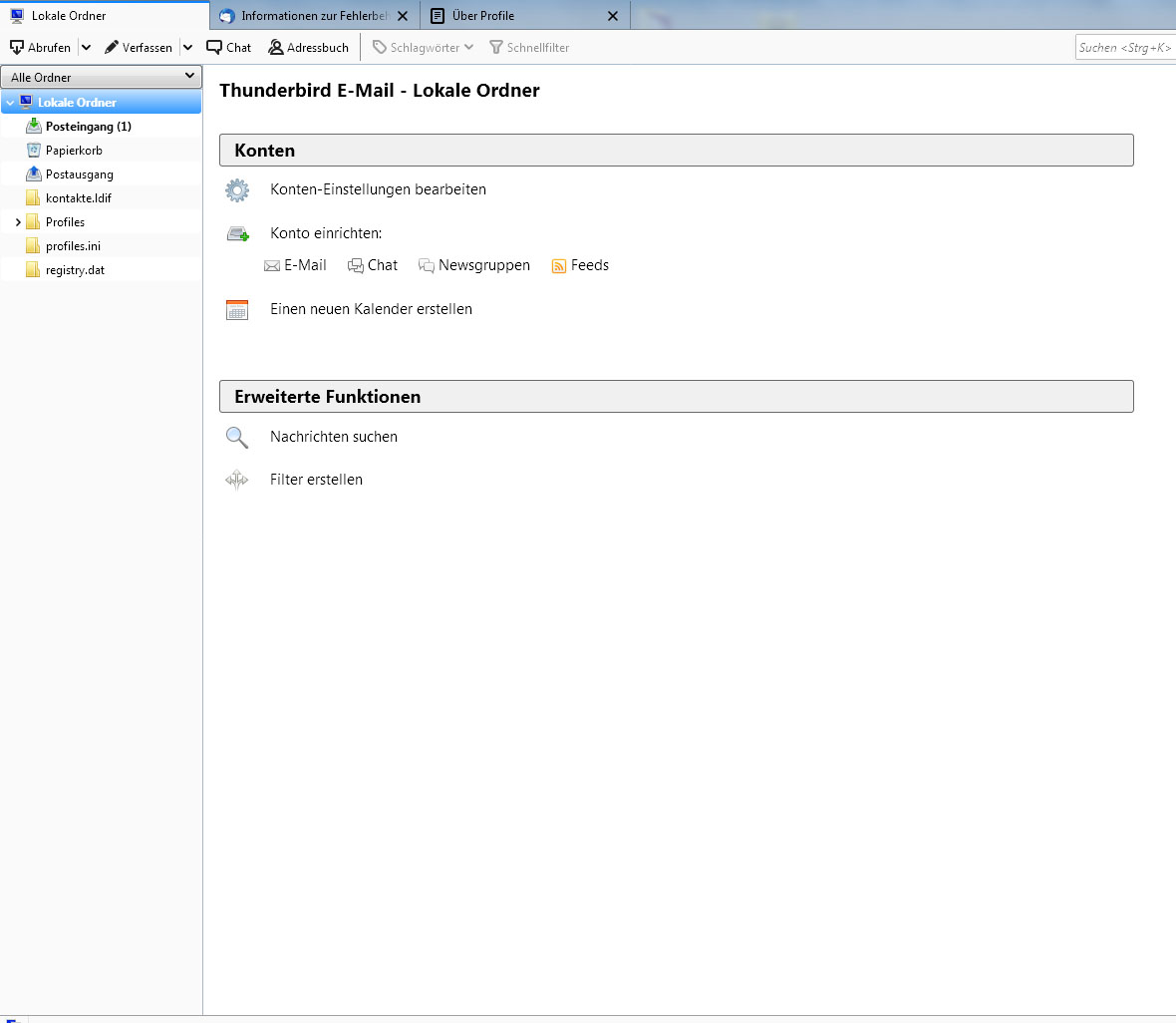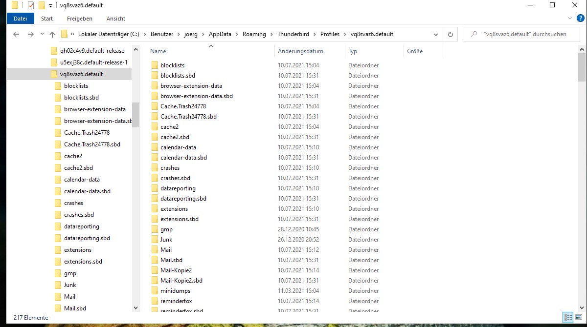 Oder des Profilordners xxxxxxxxx.default selber, der sich in ....\AppData\Roaming\Thunderbird\ Profiles\ hierbefindet ? Dieser befand sich dort nicht.