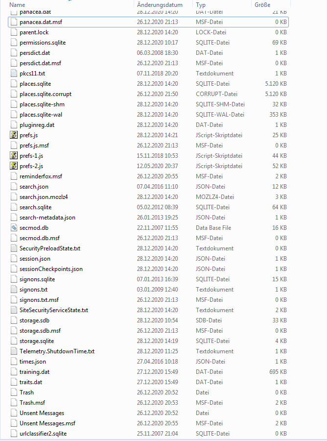 Die gelben Ordner kontakte.ldif, Profiles, profiles.ini, ...etc dürften niemals unter den Lokalen Ordnern erscheinen!!
