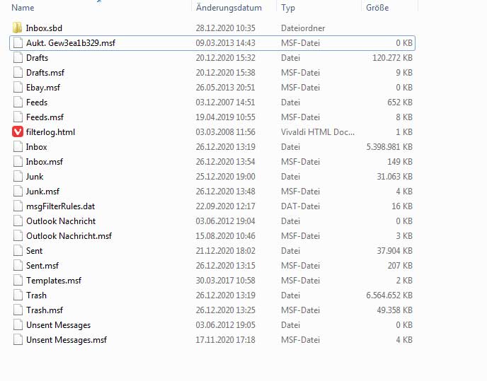 Auch da bin ich nicht sicher, denn in deinem Screenshot sieht man einen Ordner "Mail", in denen sich deine Maildateien befinden sollten.