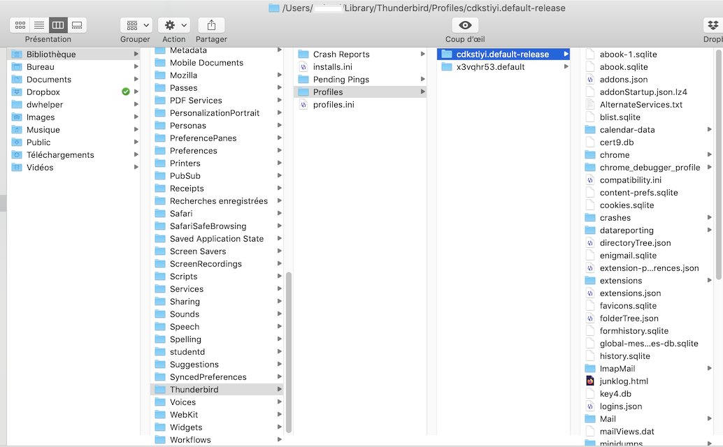 Zeige den Profilordner an über Hilfe > Informationen zur Fehlerbehebung > Profilordner > Order öffnen.