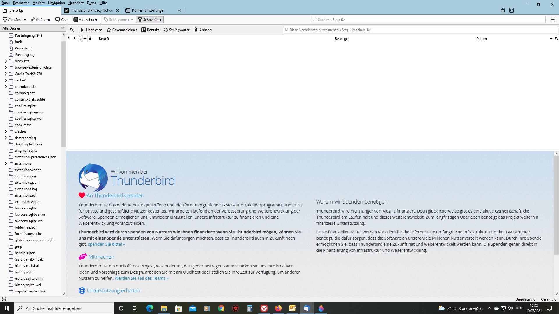 Ich schlage dir eine Fernwartung per Visiokonferenz vor, um deine Thunderbird-Installation zu reanimieren. Das spart viel Zeit und Nerven.