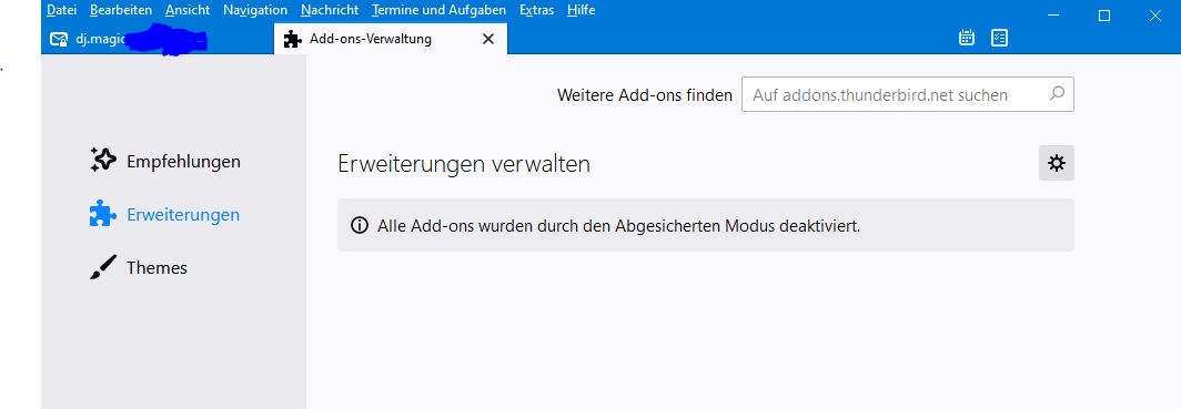 Im abgesicherten Modus startet er einwandfrei. Add On´s werden keine angezeigt.