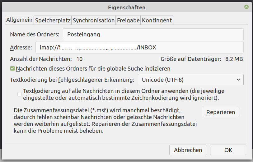Nach dem "Reparieren" des Ordners, sind alle Mails wieder da." graba, Gl.-Mod.