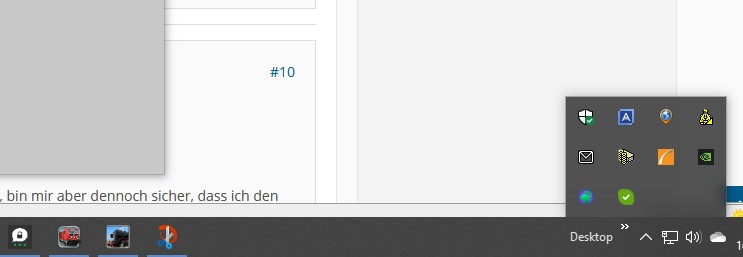 Ich hoffe, dass ich daran denke, wenn ich auf Arbeit auf meinem Win10-Notebook (ohne TB übrigens) mal wieder solch ein Symbol sogar gleich dreifach im Systray habe, und einen Screenshot für den Thread hier machen kann. Wie hier meine privaten Rechner "rendert" der das Windows-GUI übrigens mit Intel-Chipsatzgrafik, um mal eine mir spontan einfallende Gemeinsamkeit zu nennen.