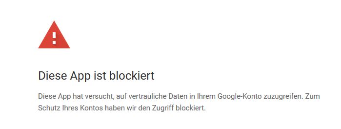 Habe mich erneut angemeldet. Danach kam die Fehlermeldung, dass die CardBook App von Google blockiert wird, siehe Anlage.