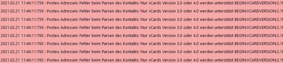 Bei mir werden etliche Adressen dort angezeigt mit dem Hinweis, Fehler beim Parsen des Kontakts und das nur VCard 3.0 und 4.0 unterstützt werden.