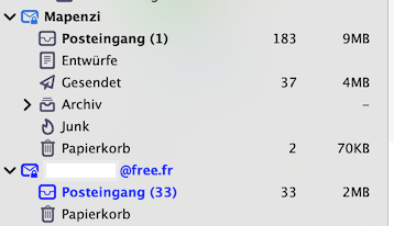 den Posteingang und den Papierkorb wie es in meinem Screenshot unten zu sehen ist