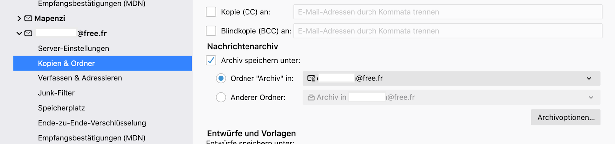 Wie sieht es denn in den Konten-Einstellungen > Kopien & Ordner > Nachrichtenarchiv für dieses Konto aus ?