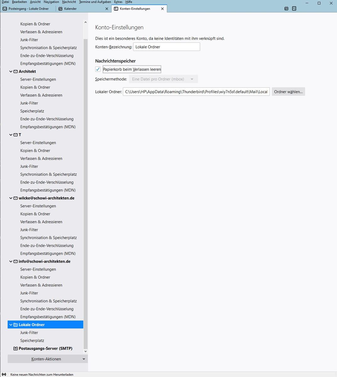 Dann habe ich Thunderbird beendet und nach dem Wiederaufrufen waren alle meine Unterordner aus dem Bereich lokale Ordner weg,