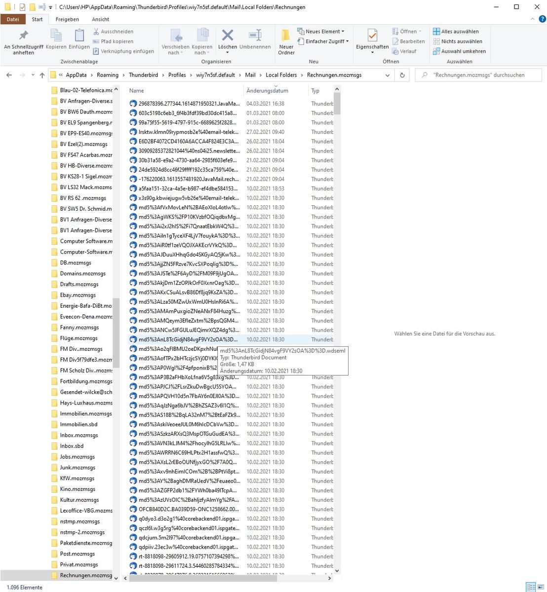 Wenn ich in meinen Profilordner Local Folders unter mail aufrufe finde ich folgendes Bild: