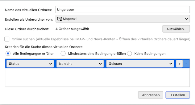 wie einen Ordner "Ungelesene Nachrichten" einrichten ?