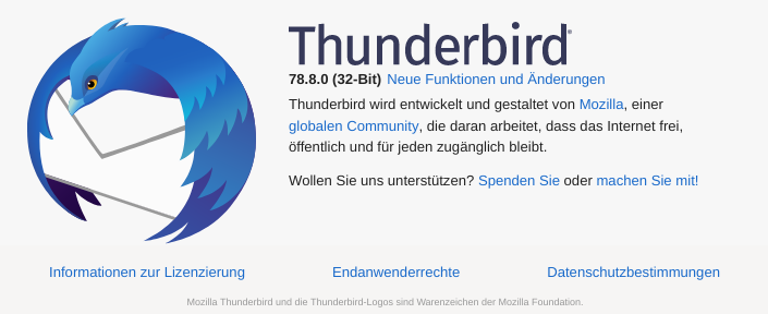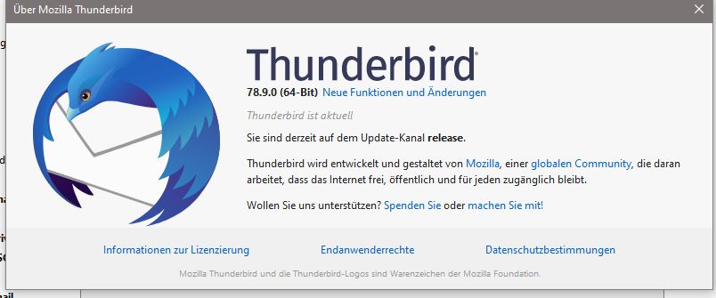 Thunderbird-Version: 78.8.0 (32-Bit) und 78.9.0 (64-Bit)