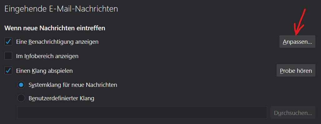 Mail-Benachrichtigung bearbeiten