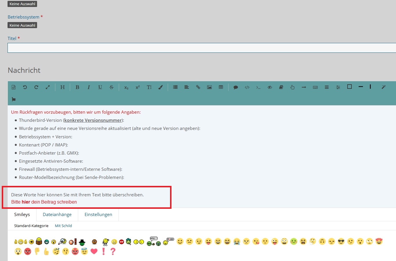 - Habe seit Tagen Propleme bei Thunderbird Emails schreiben. Im Fenster steht,