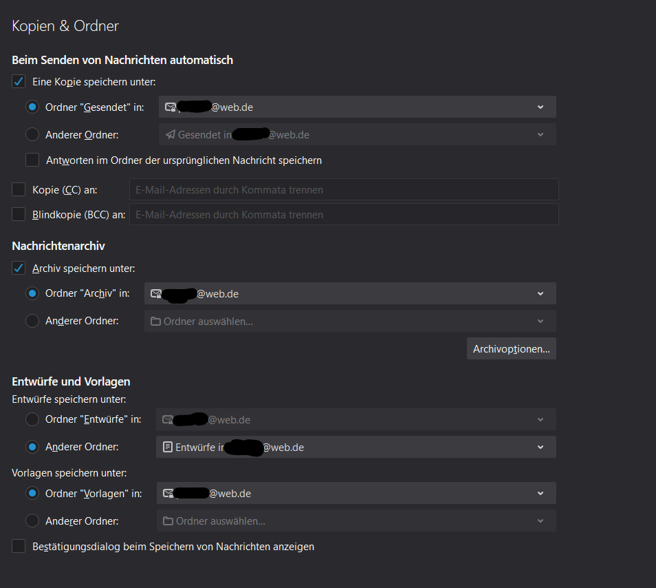 Ob ich als Ordner für Entwürfe die Standardoption oder manuell den Entwurfsordner auswähle, macht keinen Unterschied: