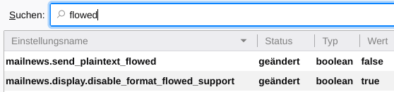 Das Thema «format=flowed» ist schon sehr alt. Die Frage danach hat mich dazu gebracht, mal genauer hinzuschauen, und tatsächlich: