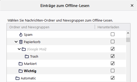 In Thunderbird wird mir bei meinem Google Mail Konto der Ordner "Wichtig" angezeigt. Da ich diesen nicht nutze, möchte ich ihn ausblenden. Ich habe es schon über die Synchronisierung versucht, das hat allerdings leider nichts bewirkt. Ich kann den Ordner auch nicht löschen, dann bekomme ich eine Fehlermeldung. Wie kann ich den Ordner ausblenden?
