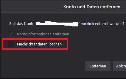 Ich hatte 5 Magenta Konten wo von 3 ich nun gelöscht habe. Ich bin über die Konten Einstellungen gegangen, habe das entsprechende Konto markiert und ganz unten dann auf Konto löschen gegangen. Dabei wurde das zugehörige Ausgangs Server Konto nicht gelöscht warum auch immer. Also habe ich dort die 3 auch gelöscht. Dann Tunderbird beendet und neu gestartet.