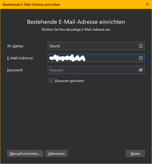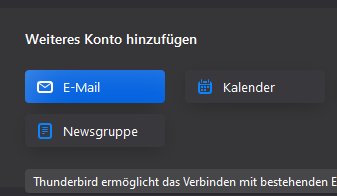 Ich klicke auf +NEU und dann auf "bestehendes E-Mail-Konto..."