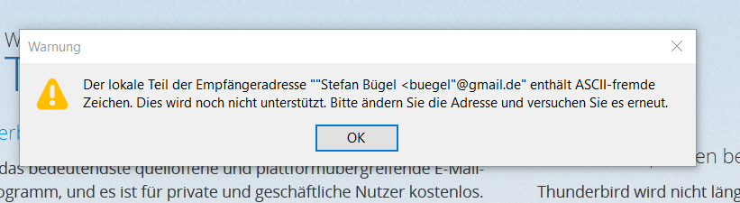 bei meinem geschaetzten TB kommt leider seit einiger Zeit die Fehlermeldung, dass eine meiner Empfaengeradressen nicht verarbeitbaren ASCII-Code enthaelt, siehe Bild.