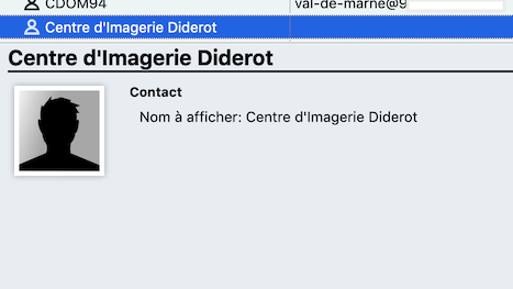 und im Adressbuch den Kontaktbereich