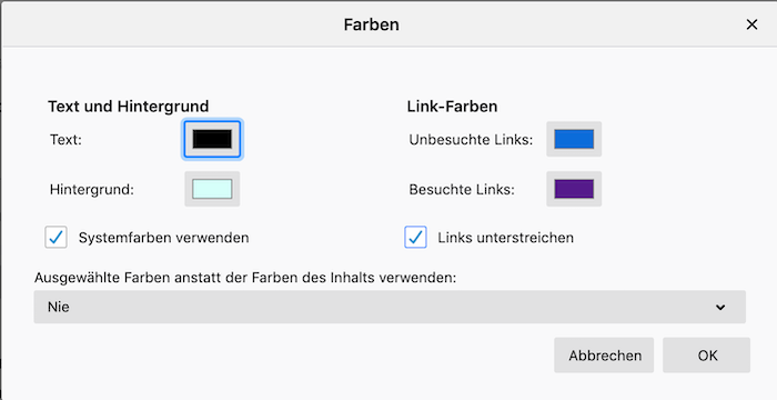An diese Einstellungen hatte ich bislang gar nicht gedacht, obwohl sie auch auf den Hintergrund in bestimmten Fensterbereichen und in Tabs Einfluss haben können. Ich muss allerdings gestehen, dass insbesondere die Farbeinstellungen für mich kompliziert sind.