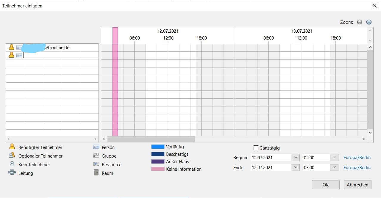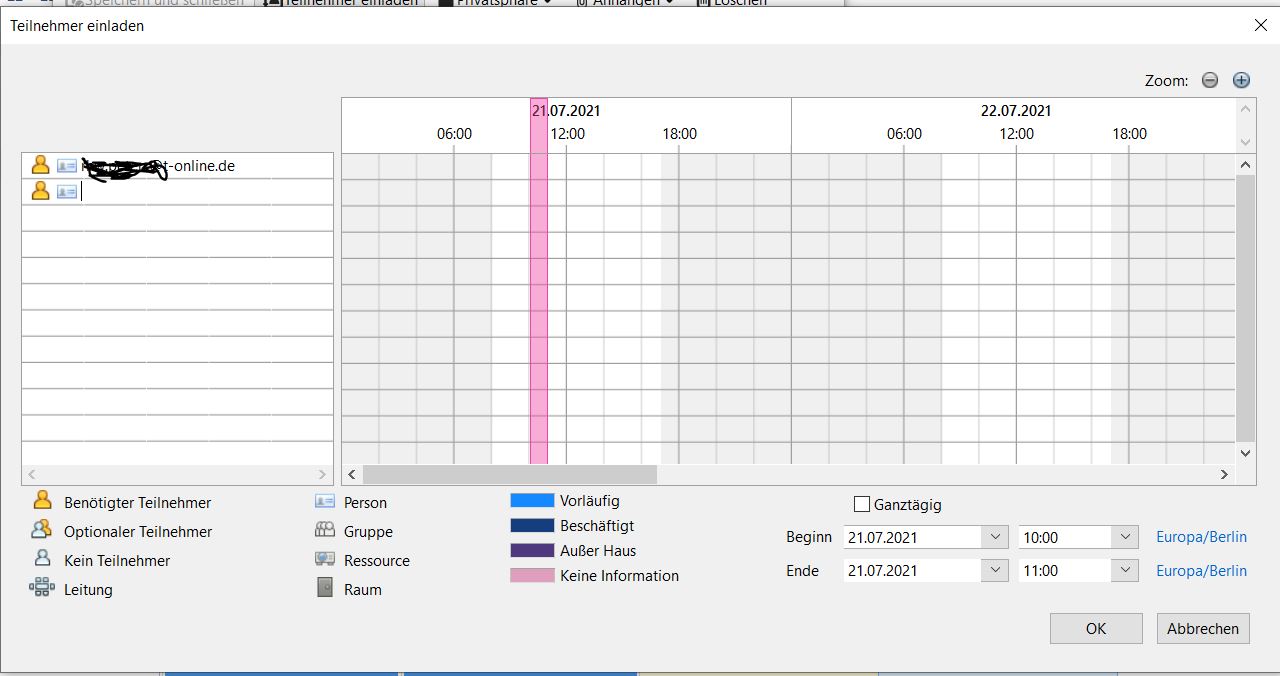 • Anzeige belegter Zeiten bei Einladungen fehlt