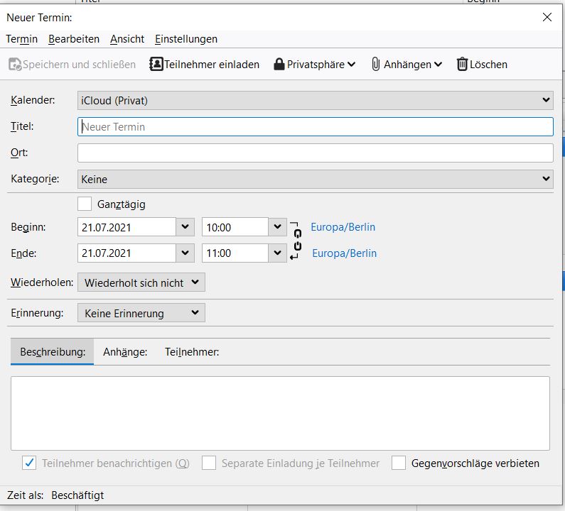 • Thunderbird sendet keine Kalendereinladungen mit Mitgliedern über TBsync & exchange active sync an den zentralen Server.