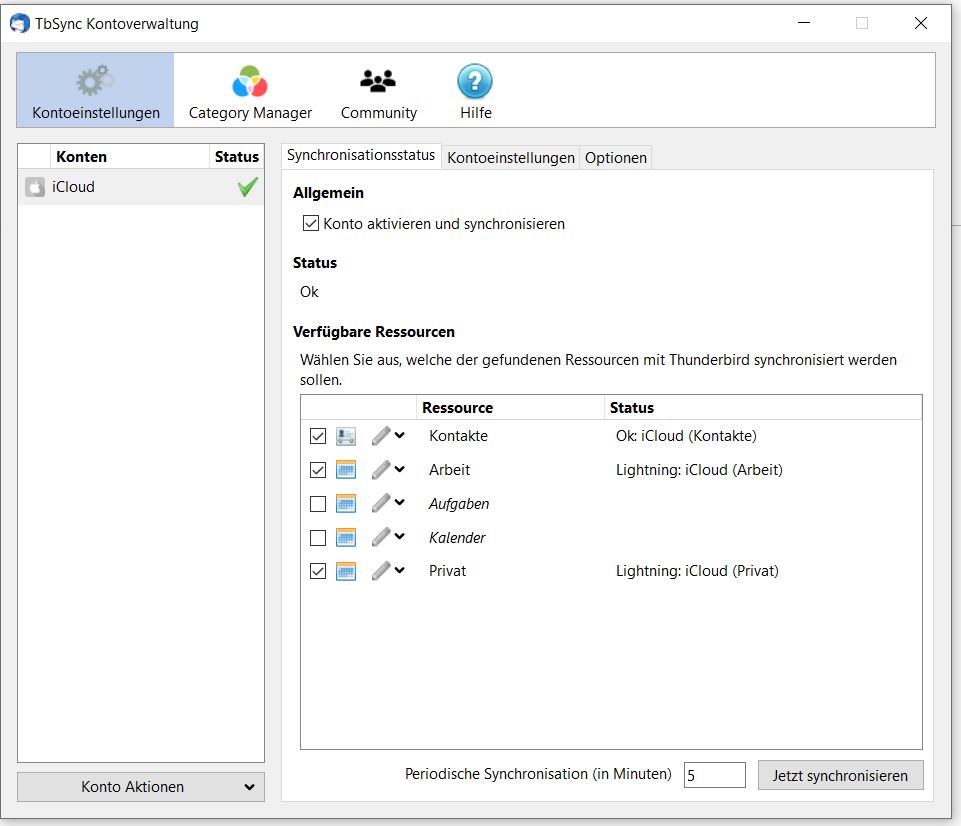 Da ich nun endgültig von macOS auf Windows umziehen möchte, muss ich auch Kontakte und Kalender in Thunderbolt zum Laufen bekommen. Da meine Frau und mein iPhone aber bei Apple bleiben bleibt die Apple iCloud der Server.