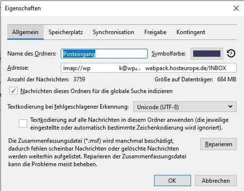 Was ich inzwischen festgestellt habe ist, dass die "IMAP-Adresse" der vielen Ordner in meinem Postfach den Umzug nicht mitgemacht haben und auch neu angelegte Unterordner noch den alten IMAP-Pfad zeigen. Siehe Anhang/Screenshot.