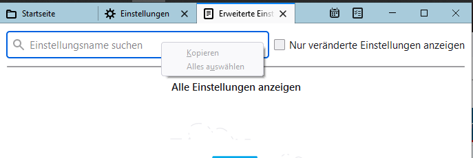 Mir fällt auf, dass (ich denke es ist ab TB 91) unter Einstellungen--> Allgemein --> Konfiguration bearbeiten bei Rechtsklick in die Suchleiste der Eintrag "Einfügen" überhaupt nicht mehr vorhanden ist. Geht nur noch per Strg+v einen vorher in die Zwischenablage kopierten Text einzufügen.