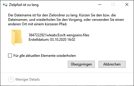 ich wollte meinen Profilordner sichern. Aber wohin ich diesen auch kopierte, immer war ein Dateiname zu lang.