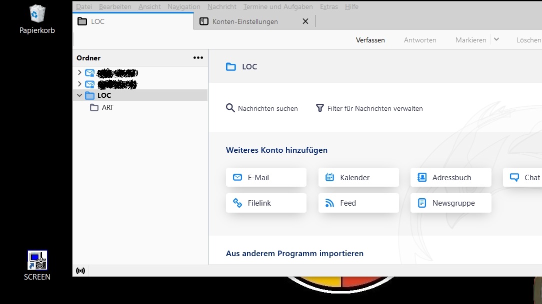 In den Konten-Einstellungen sind alle accounts vorhanden, alle Einträge scheinen korrekt, aber das Programm ruft keine mails von denen ab, nur von den 2 die es im linken Baum anzeigt.