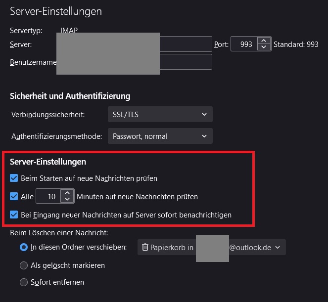 bei sämtlichen Konten sind die Servereinstellungen identlsch mit denjenigen aus deinem Screeshot.