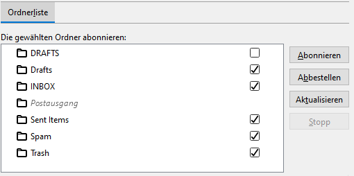 Zu Deinem Bild: Du kannst in den TB-Account-Settings auch "Sent Items" als Ordner für gesendete Nachrichten festlegen und Meine Ordner/Sent löschen, nur wird das dann nicht mehr als "Gesendete" lokalisiert.