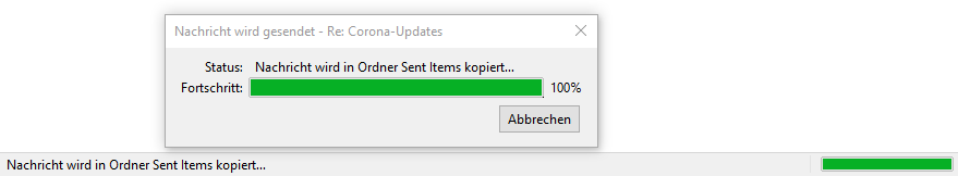 Senden von eMails mit Anhängen bleibt ewig hängen mit "Nachricht wird in Ordner Sent Items kopiert..." (100%)