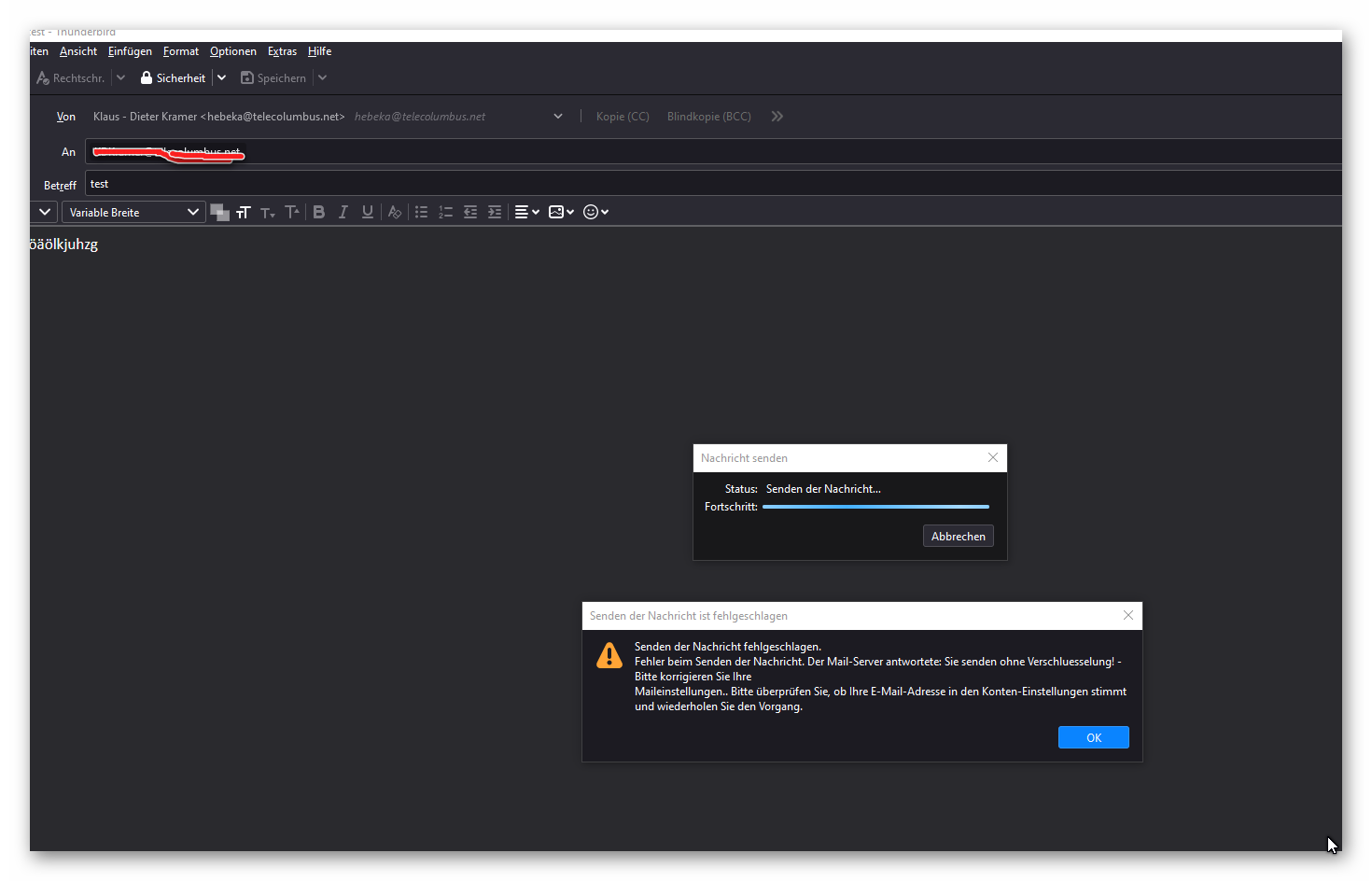 • Thunderbird kann plötzlich keine Emails mehr versenden an GMX