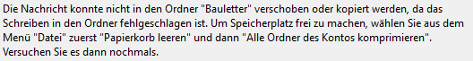 Aus Speichergründen habe ich die Festplatte des NAS getauscht. Seitdem kann ich keine Nachrichten mehr in die lokalen Ordner verschieben. Es kommt :![]()