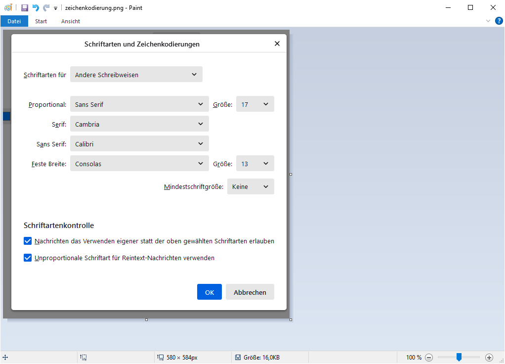Zeichenkodierung der E-Mails nicht mehr veränderbar