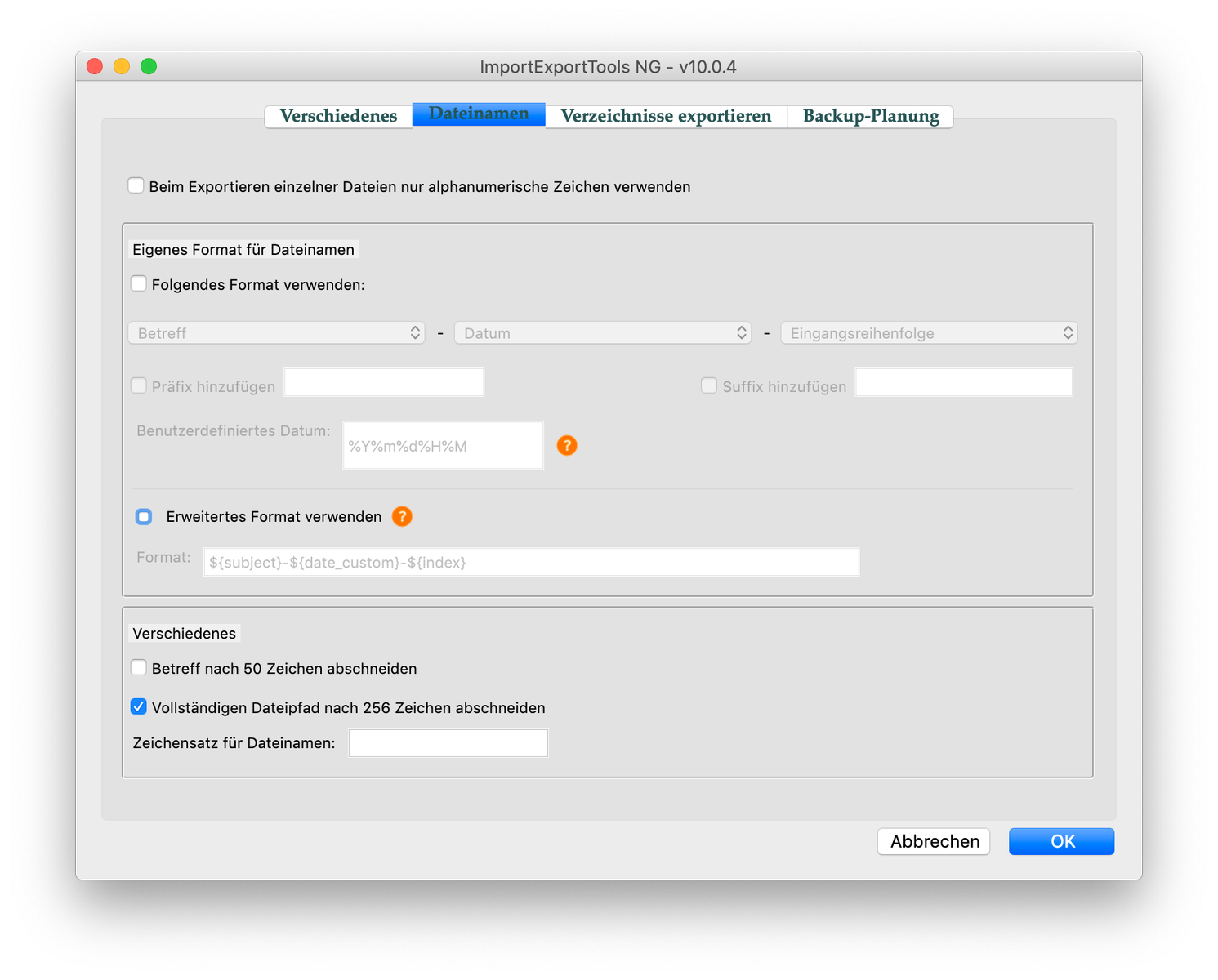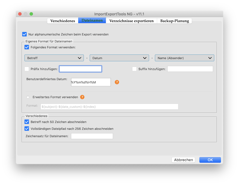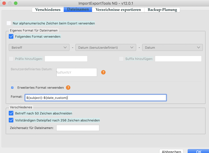 meine Einstellungen für den Dateinamen: