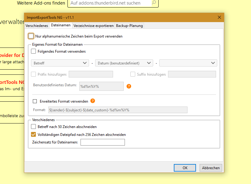 Dateiname beim Speichern von Mails