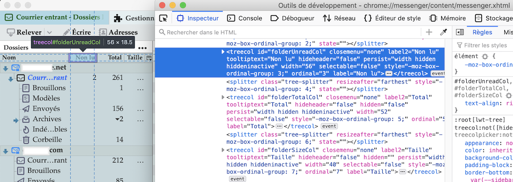 ich hatte das schon mal in irgend einer Beta-Version gemacht, allerdings benutze ich nur die beiden Ordnerspalten Total und Größe, da die Zahl der ungelesenen ja ohnehin in Klammern hinter dem Ordnernamen steht. Müsste mal in meinen TimeMachine Baackups ziemlich weit zurück gehen, um diesen Code in einer alten userChrome.css Datei zu finden.