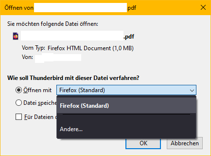 Auch bei Mails, die ich bekommen, geht es. Es betrifft auch nur PDF- und HTML-Anhänge, JPG's, DOC's und MPx's sind nicht betroffen. Auch im Explorer gibt es keine Probleme.
