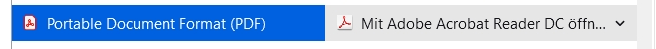 Da habe ich jetzt mal 'Andere' gewählt und wieder Adobe Reader eingestellt. Der liegt im Verzeichnis C:\Program Files (x86)\Adobe\Acrobat Reader DC\Reader\AcroRd32.exe. Das ist leider etwas unbequem einzustellen, da der Reader an der Stelle nicht in der Vorauswahl von geeigneten Anwendungen steht. Funktioniert aber einwandfrei.