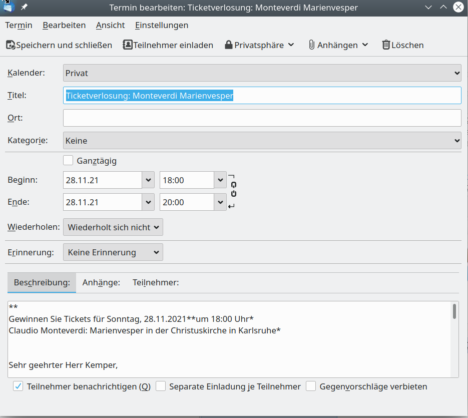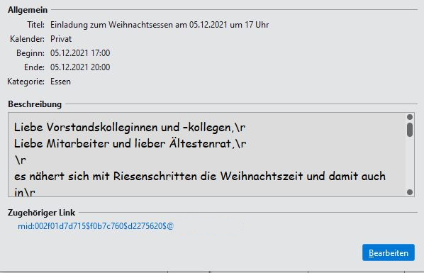 Alternativ wäre auch ein Link vom Termin zur E-Mail vorstellbar, um das zu vereinfachen