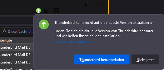 Unter 78.x hatte ich dem Thunderbird die automatische Aktualisierung abgestellt. Es kam dann von Zeit zu Zeit dieser Hinweis: