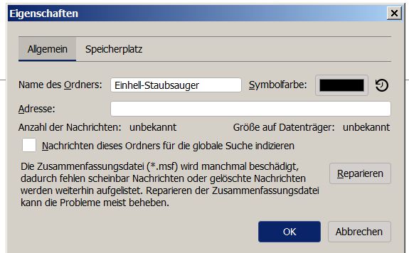 Ich wollte einen überflüssigen Mail-Unterordner löschen, so wie ich das wohl schon hundertmal gemacht habe. Dieser hier widersetzt sich beharrlich.