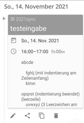 4. Schritt: Hier ein Screenshot des Termins nach Synchronisierung mit meinem Telefon: Formatinfos sind im Termin vorhanden und können am Telefon gesehen werden.